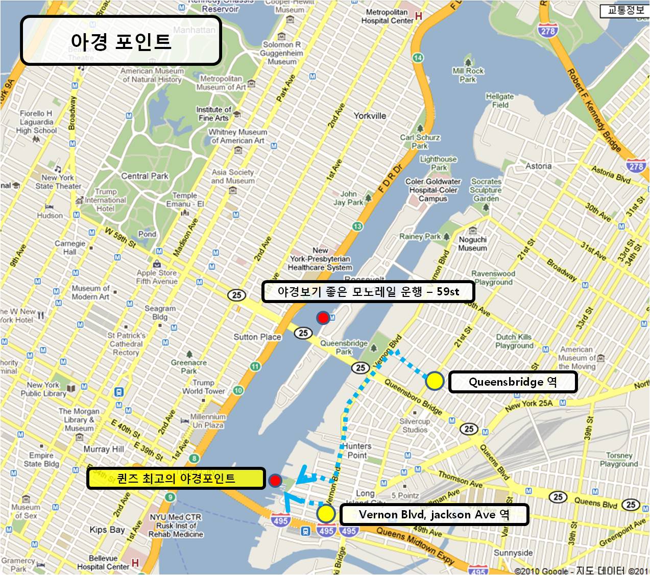 59번가에서 좀 늦게 이동한다 싶다면 59번가 1번 AVE 에서 케이블카를 운행하고 있는데 이 안에서 보는 야경도 꽤 괜찮다고 한다(메트로카드 이용가능)